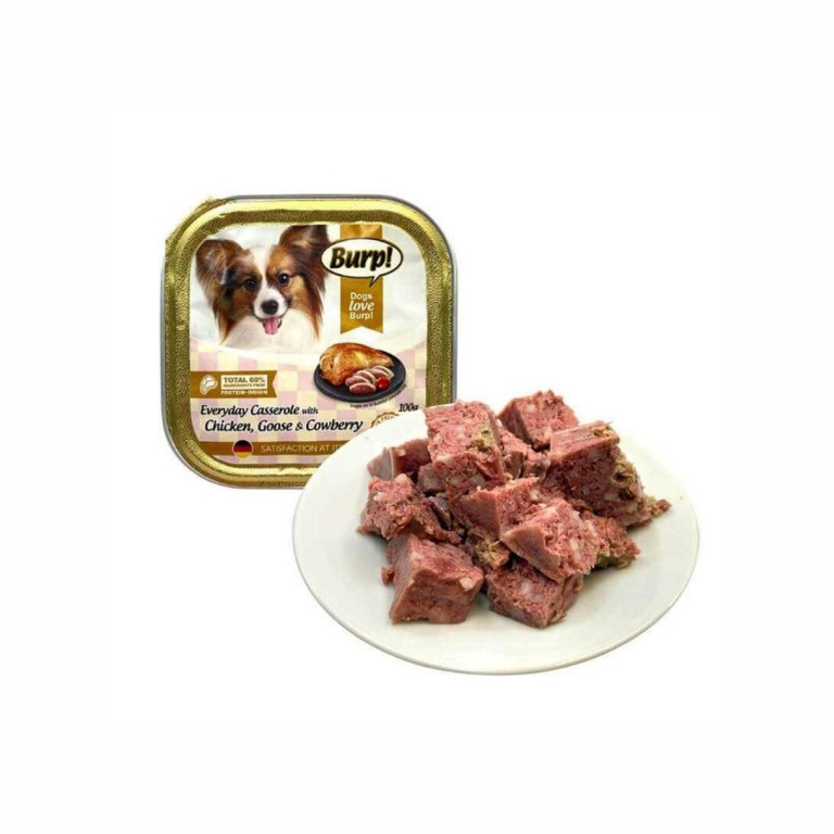 Burp! Everyday Casserole w Chicken, Goose & Cowberry is protein’rich and provides a perfect blend of quality fresh meats and organ meats for optimal health.