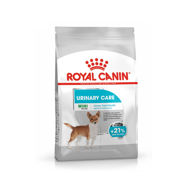 ROYAL CANIN? Mini Urinary Care dry food is formulated exclusively for small breed dogs that are susceptible to urinary sensitivities. This nutritionally balanced diet helps to support the health of your small dog?s urinary tract, while helping to support a healthy environment within the bladder. For adult and mature small breed dogs (from 1 to 10kg) ‘ over 10 months old For dogs prone to urinary sensitivities Increase the dilution of dogs’ urine by 21% compared to regular mini adult food Helps support optimal urinary comfort