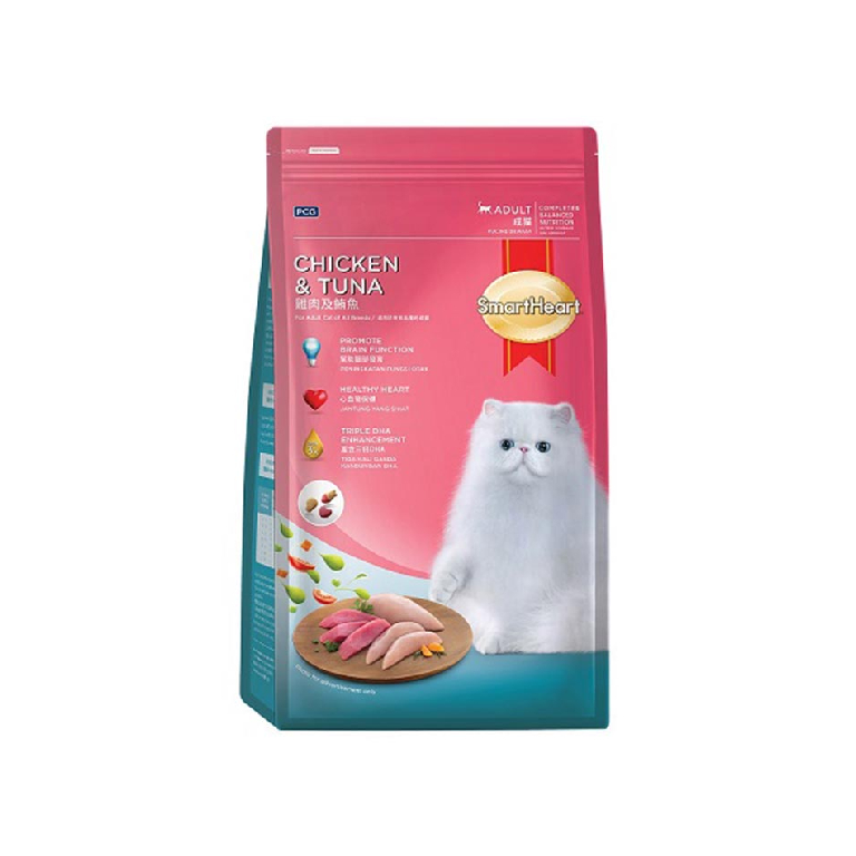 SmartHeart Dry Food Chicken and Tuna Flavor For Adult Cats of All Breeds Complete and balanced nutrition to meets their requirements to maintain good health and condition Promote Brain Function ‘ DHA (from fish oil) and choline to enhance brain and nervous system function Healthy Heart ‘ Omega 3 Fatty acids from fish oil for a healthy heart Triple DHA Enhancement ‘Supplemental level of DHA for improved cats memory, alertness and intelligence Healthy Skin and Coat ‘ The combination of Biotin, Zinc and Omega 3 and 6 fatty acids for a healthy skin and shiny coat Vision Nourishing ‘ Taurine supplement for healthy eyesight Strong Bones and Teeth ‘Calcium, Phosphorus and Vitamin D for strong bones and teeth Weight: 1.2 Kilogram