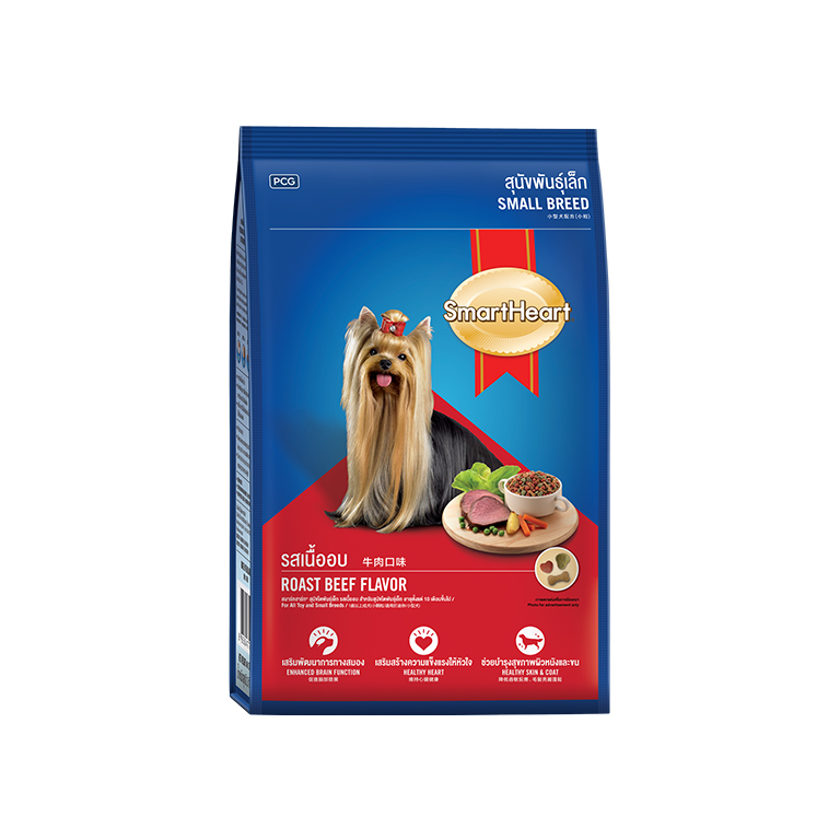 SmartHeart Dry Food’ For All Toy and Small Breeds’ Roast Beef Flavor’ Enhanced Brain Function ‘ DHA (from Fish Oil) and choline for enhance brain and nervous system function’ Healthy Heart ‘ Omega 3 fatty acids from fish oil for a healthy heart’ Healthy Skin and Coat ‘ balanced Omega 3 and 6 essential fatty acids for a healthy skin and shiny coat’ Immune System ‘ Vitamin E and Selenium for strong immune system’ Healthy Digestion ‘ Highly digestible ingredients for improved digestion and stool quality’ Strong Bones and Teeth ‘ Calcium and Phosphorus for strong bones and teeth’ Reduce Dental Plaque ‘ Crunchy kibble texture reduces dental plaque’ Weight: 1.5 Kilogram