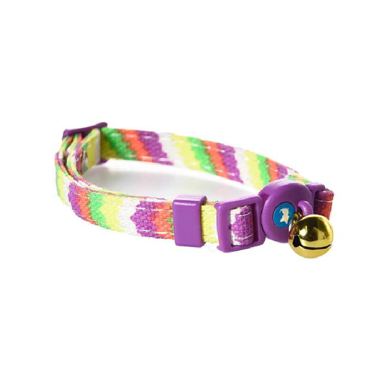 Showcase your cat’s personality with this fun and decorative rainbow Cat Collar with Gold Bell.